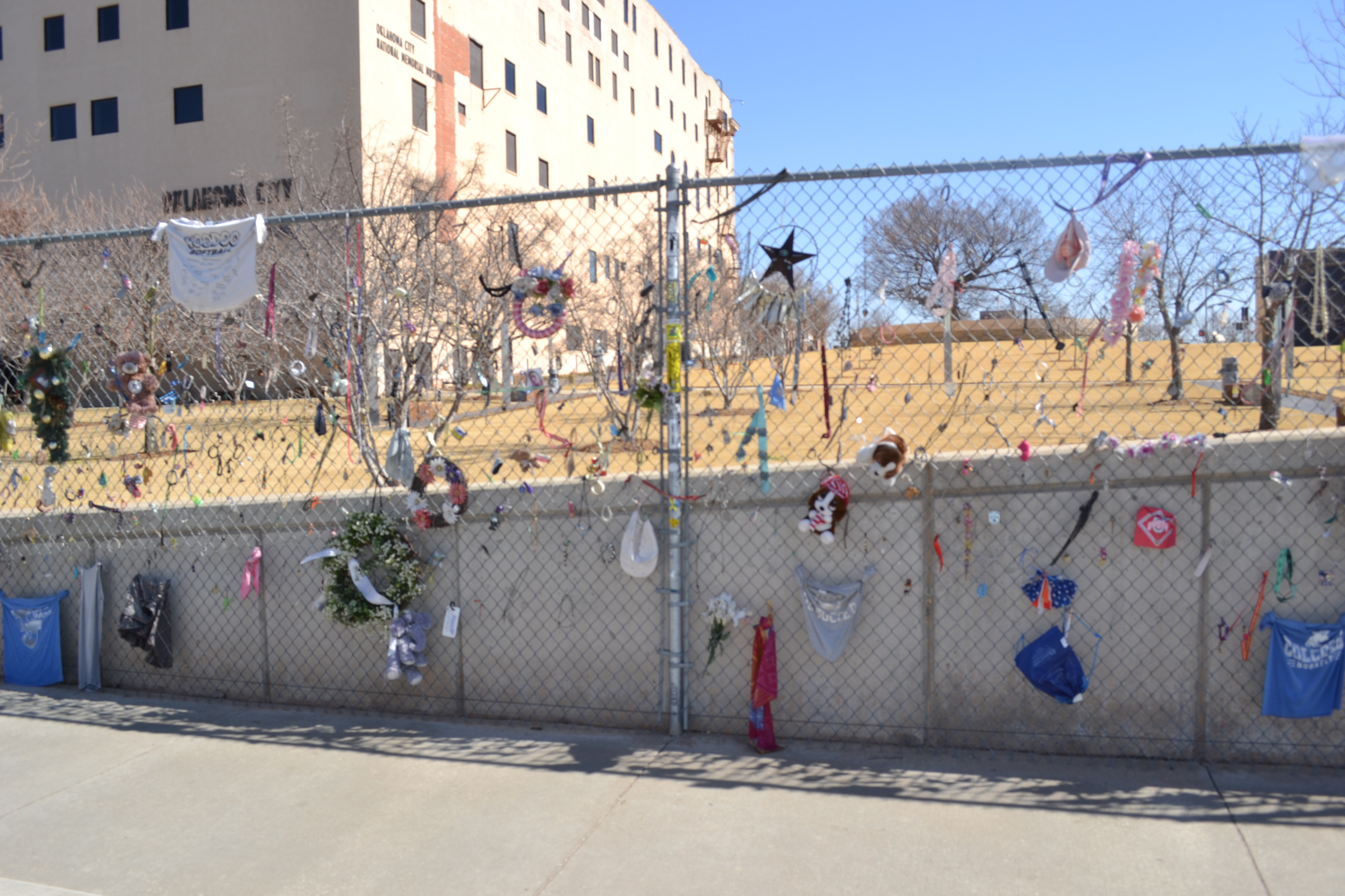 It’s hard to believe that it’s been nearly 19 years since that tragic April day in 1995 where 168 people senselessly lost their lives in the bombing at the Alfred P. Murrah Federal Building. I parked the car across from the museum and made my way over, and I figured it would be a nice area with a few mementos here and there, but what I saw and the feelings I felt were things I never expected. The first thing I saw as I crossed the street was simply a fence. Just a regular looking fence that you or I could have in our yard, but what filled this fence is what truly makes it special.
